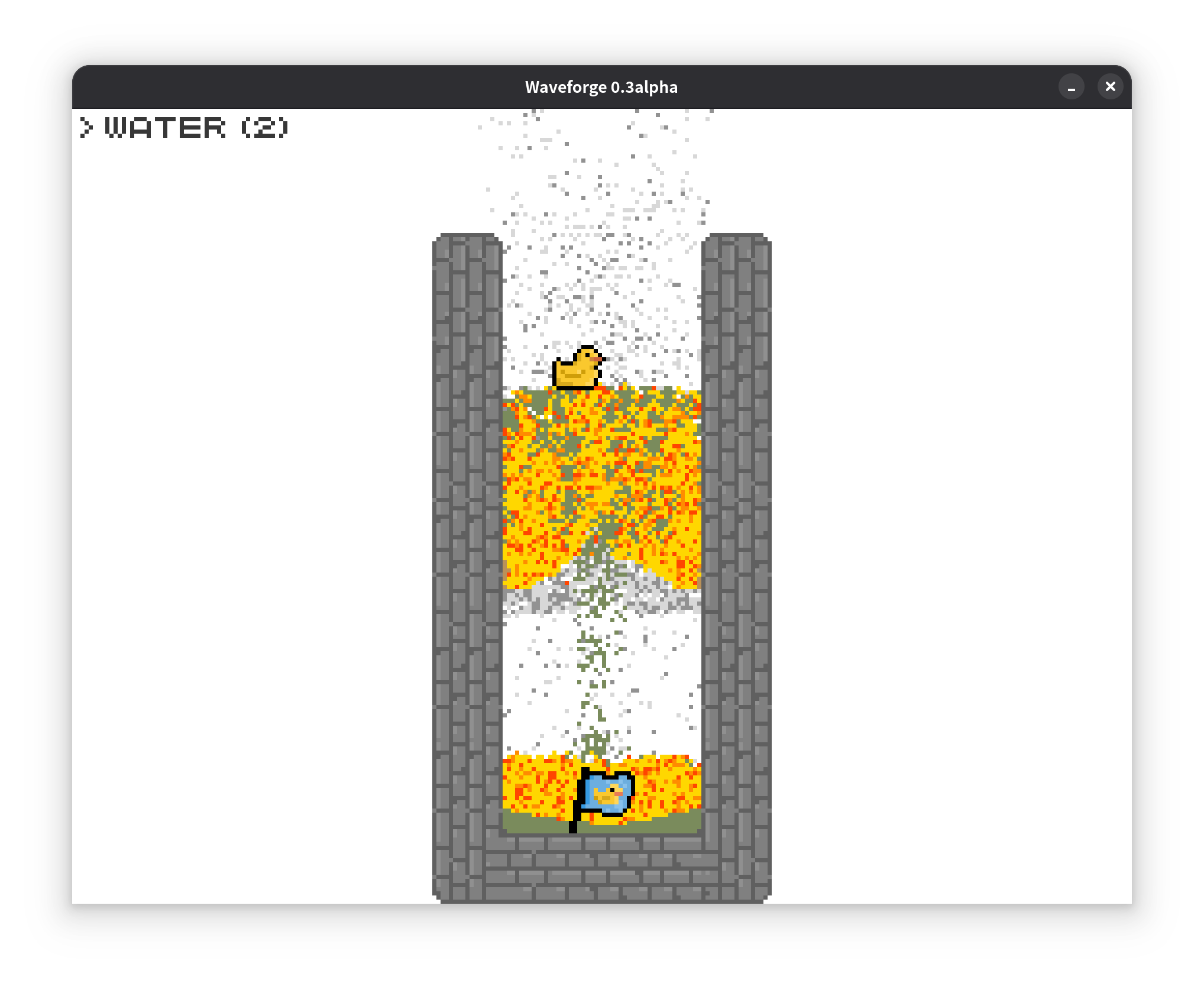 Waveforge is a 2D physics-based puzzle game where players manipulate water waves and emergent physical phenomena to guide a rubber duck to the goal. Set within a meticulously crafted pixel-art physics world reminiscent of Noita, it invites players to experience uniquely engaging physical interactions. Featuring over ten thoughtfully designed levels, the game delivers about 1 hour of delightfully challenging puzzle-solving gameplay.